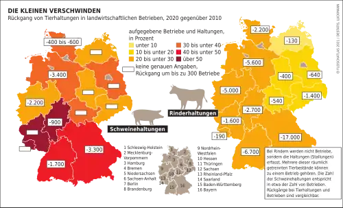 - ↑ Wie viele landwirtschaftliche Betriebe gibt es in Deutschland? In: praxis-agrar.de. Bundesinformationszentrum Landwirtschaft, abgerufen am 6. Januar 2024.