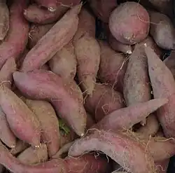 Die Süßkartoffel ist eine trockenheitsresistente, anpassungsfähige und anspruchslose Kultur, die weltweit in den Tropen angebaut wird. In Brasilien ist der Anbau allerdings rückläufig, weil die Süßkartoffel von Lebensmitteln, die leichter zuzubereiten sind und ein höheres soziales Ansehen haben, verdrängt wird.[45] Im Jahre 2006 wurden in Brasilien knapp 300.000 Tonnen Süßkartoffeln geerntet, wobei die Ernte auf fast 40.000 Betriebe verteilt ist. Etwa 87 % der Ernte wurde verkauft, wovon wiederum 87 % an Zwischenhändler gingen. Zwei Drittel der Ernte kam ohne künstliche Bewässerung aus, rund die Hälfte ohne Pestizide. Rund 70 % der Ernte wurden mit Kunstdünger versorgt.[46] Zwei Drittel der Süßkartoffelernte Brasiliens stammt aus dem Nordosten des Landes. Die Bundesstaaten mit der größten Ernte an Süßkartoffeln waren Sergipe, São Paulo und Paraíba.[47]