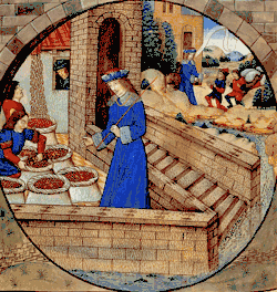 Das 1. Buch Mose berichtet von Josef, der sich im Gefängnis als Traumdeuter hervortat[11] und auch Träume des Pharaos deutete.[12] Dieser Josef wird schließlich ein erfolgreicher Händler: In sieben ertragreichen Jahren sammelt er alle Getreidevorräte in Kornspeichern. Als eine Dürre einsetzt, verkauft Josef den Ägyptern das gesammelte Korn. Dann tauscht er Getreide gegen Vieh, später gegen Land der Ägypter, und am Ende werden die Bauern zu Leibeigenen des Pharao. Er führt ein Gesetz ein, dass die Ägypter weiterhin das Feld bebauen, als Gegenleistung jedoch 20 % des Ertrags an den Pharao entrichten sollen.