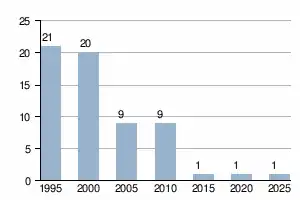 Nachfolgende Grafik zeigt die Minderung der Anzahl der LKKen von 1995 bis 2025: