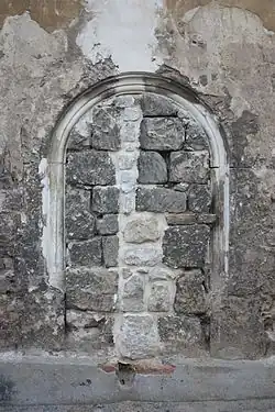 Die Grundstückseinfriedung besteht aus einer mit Pfeilern versehenen Backsteinmauer.