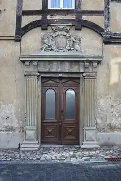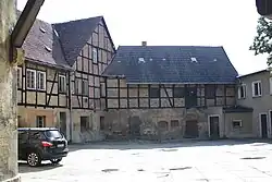 Der Hof entstand als Freihof. Das Wohnhaus stammt in seinem Kern aus der Zeit um 1620 und wurde im oberen Geschoss aus Fachwerk und im Erdgeschoss aus Bruchstein errichtet. Das Fachwerk weist straßenseitig die Figur des Ganzen Manns auf. Die Stockschwelle ist mit Taustäben verziert. Um 1880 entstanden unter Verwendung älterer Bauteile ein Erweiterungsbau sowie das Portal. Oberhalb des so in der Gründerzeit gebauten Hauseingangs befindet sich eine barocke Wappenkartusche. Neben dem Eingang ist ein vermauertes Portal aus der Renaissancezeit zu erkennen. Auf dem Hof stehen an der Nord- und Ostseite aus dem 18. und 19. Jahrhundert stammende einfache zweigeschossige Fachwerkgebäude.