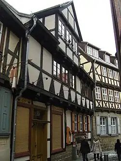 Das zweigeschossige Fachwerkhaus entstand in der Zeit um 1600. Die Fachwerkfassade verfügt über eine reich profilierte Schwelle mit Konsolfries. Die Fußwinkelhölzer sind mit einem Fächer-Hexagramm und Wirbelrosetten verziert. Füllhölzer des Fachwerks sind nach außen gekehlt. Das auf dem Haus befindliche Zwerchhaus wurde erst zu einem späteren Zeitpunkt hinzugefügt.