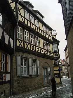 - ↑ Hans-Hartmut Schauer, Quedlinburg, Fachwerkstatt/Weltkulturerbe, Verlag Bauwesen Berlin 1999, ISBN 3-345-00676-6, Seite 59