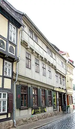 - ↑ Hans-Hartmut Schauer: Quedlinburg, Fachwerkstatt/Weltkulturerbe, Verlag Bauwesen, Berlin 1999, ISBN 3-345-00676-6, Seite 42.