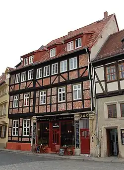 Das Fachwerkhaus entstand um 1680 und ist in seinem Kern barocken Ursprungs. Aus dieser Zeit geht insbesondere die Fensterreihung im Obergeschoss zurück. Die Fassade wurde 1821 umgestaltet. Es entstanden angeputzte Gurtprofile. Ein Ladengeschäft und neue Fenster wurden eingebaut. Um 1900 wurden die Pilasterkapitelle mit Tierreliefs am Laden geschaffen.