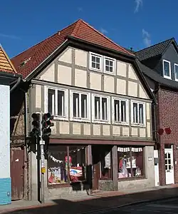 - Nr. 107: 2-gesch. Wohn- und Geschäftshaus (D), Fachwerkbau mit Walmdach und Zwerchgiebel