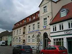- ↑ Bernd Hinkeldey: Altes Fachwerkhaus aufwendig saniert. In: BIG Städtebau (Hrsg.): Grimmen – 10 Jahre Städtebauförderung. 2001, S. 29