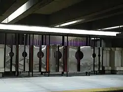 Die Lüftungsgitter auf beiden Bahnsteigen werden durch künstlerisch gestaltete Elemente von Charles Daudelin verdeckt. Es handelt sich um rechteckige Chromstahlplatten mit runden Aussparungen.[3]