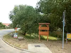 Früher stand an der Kirchenmauer ein Denkmal für die Gefallenen des Ersten und Zweiten Weltkrieges. Es zeigte im oberen Teil das Relief eines verwundeten Soldaten und war von einem eisernen Kreuz gekrönt. Nach 1945 es wurde abgerissen. Heute ist nur noch der Sockel zu erkennen.[14]