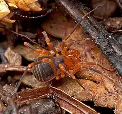 - ↑ Prashant P. Sharma and Gonzalo Giribet (2011): The evolutionary and biogeographic history of the armoured harvestmen – Laniatores phylogeny based on ten molecular markers, with the description of two new families of Opiliones (Arachnida). Invertebrate Systematics 25: 106–142.
