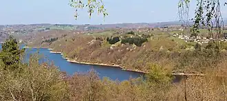![]() Gemeinde Lanobre am östlichen Ufer des Stausees Lac de Bort les Orgues | ||