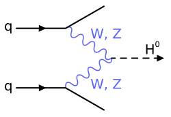 Eine der Hauptaufgaben des LHC war die Suche nach dem Higgs-Boson, dem letzten noch nicht endgültig nachgewiesenen Teilchen des Standardmodells der Teilchenphysik. Am 4. Juli 2012 berichteten die Forschergruppen an den Detektoren ATLAS und CMS, dass sie ein neues Boson gefunden haben, weitere Messungen bestätigten, dass sich das Teilchen wie vom Higgs-Boson erwartet verhält. Das Higgs-Boson bestätigt Theorien, mittels der die Massen der Elementarteilchen in das Standardmodell beziehungsweise in die Glashow-Weinberg-Salam-Theorie der elektroschwachen Wechselwirkung eingeführt werden.[77][78] Anders gesagt bestätigt das Higgs-Boson die Existenz des sogenannten Higgs-Feldes und des zugrundeliegenden Higgs-Mechanismus; dieses Feld ist im Universum allgegenwärtig und führt durch Wechselwirkung mit den Elementarteilchen zu deren Masse.
