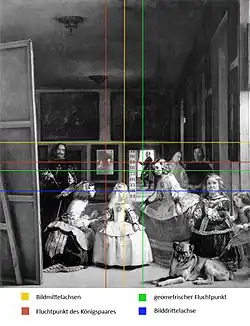 Foucaults Interpretation begreift Las Meninas als ein Metabild, als eine Reflexion über Repräsentation, die in ihrer Struktur selbstbezüglich ist, weil sie in der „Repräsentation der klassischen Repräsentation“[41] verharre und der Darstellung bloßer Stellvertretung verhaftet bleibe. Foucaults Analyse hatte in der Kunstgeschichte großen Einfluss und wurde aufgrund ihrer elaborierten Form und ihres Raffinements geschätzt. Neuere Texte weisen aber auch Fehler nach, so etwa die In-eins-Setzung von Herrscher und Betrachter, die eigentlich unterschiedliche Fluchtpunkte haben. Zudem wird überwiegend angenommen, dass der Spiegel nicht das Königspaar im Raum reflektiere, sondern die Leinwand des Malers, die ihrerseits ein königliches Doppelporträt zum Gegenstand habe.