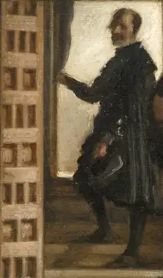 - 2. der Maler, dessen Kopf alle anderen Figuren im Gemälde überragt;