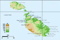 - Wied Iż-Żurrieq Tower, auch als Ta' Xuta Tower oder Sciuta Tower bezeichnet[1] (1638)