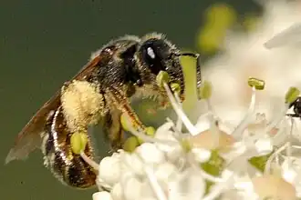 Blütenbesuch: Die Art ist ausgesprochen polylektisch, sie sammelt Pollen von Pflanzen aus 11 verschiedenen Familien.[2]