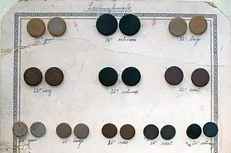 Moritz Mohl beschrieb einen als Muster in Frankreich erworbenen Knopf für Männerröcke: „Ein sogenannter Lastingknopf, mit Gewebe überzogen, unterhalbs mit einem Metallplättchen und mit einem weichen Henkel, 7 Lin. Durchm[esser]“.[1]