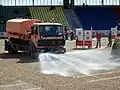 Wasserwerfer Fahrzeug der Polizei, das im Rahmen der polizeilichen Arbeit zum Schutz und zur Gefahrenabwehr bei großen Veranstaltungen und Demonstrationen sowie zur Unterstützung des Katastrophenschutzes oder als Hilfsfeuerlöschfahrzeug eingesetzt werden kann.