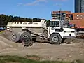 • Kofferaufbau: In der heute üblichen, wegen ihrer auch äußerlich separaten Form als Koffer bezeichnete Bauform ist der kastenförmig ausgeführte, rundum geschlossene und überdachte Laderaum nicht mit dem Führerhaus verbunden, sondern nur auf das Chassis aufgesetzt.