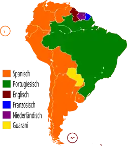 - ↑ Vgl. Duden online: Lateinamerika: „Gesamtheit der Spanisch und Portugiesisch sprechenden Staaten Mittel- und Südamerikas“. (Mexiko wird hier vereinfachend zu Mittelamerika gerechnet.)