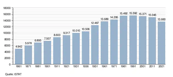 - ↑ Bilancio demografico e popolazione residente per sesso al 31 dicembre 2024. ISTAT. (Bevölkerungsstatistiken des Istituto Nazionale di Statistica, Stand 31. Dezember 2024).