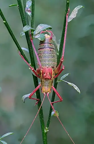 - ↑ Gottwald J., Richer C., Wörner M. (2002) Habitatwahl, Nahrungswahl und Entwicklung von B. serricauda (Fabricius, 1798) und B. constrictus Brunner von Wattenwyl, 1878 (Phaneropterinae). Articulata 17: 85-88