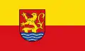Hissflagge: „Die Flagge ist gelb-rot quergestreift mit dem aufgelegten Wappen in der Mitte zum Liek hin verschoben.“ |