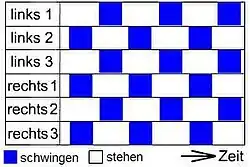 Bereits bei Vierfüßern kann ein einigermaßen stabiler Stand nur erreicht werden, wenn jeweils drei Beine auf dem Boden stehen. Am Beispiel der Tiere erkennt man aber, dass damit keine hohe Laufgeschwindigkeit erreicht werden kann.