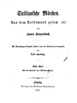 - ↑ Sicilianische Märchen. Aus dem Volksmund gesammelt von Laura Gonzenbach. 2 Bände. Leipzig, W. Engelmann.. In: Illustrirte Zeitung, 8. Juli 1871, S. 14 (online bei ANNO).