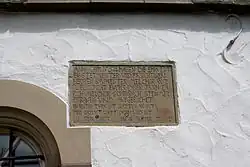 1410 wurde an dieser Stelle eine Kapelle zum Hl. Laurentius errichtet. Der Kirchturm wurde 1564 von den Baumeistern Melchor Wezel und Conrad Fuchs erbaut. Daran erinnert auch eine Steintafel mit entsprechender Inschrift.