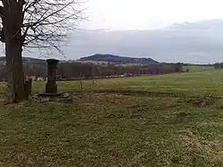 Nach Osten wird die Quertalung durch das Kleindehsaer Rückengebiet mit dem Kötzschauer Berg (465,2 m) unmittelbar südöstlich Kötzschaus verriegelt, den die S 115 über Halbau und Kleindehsa von Norden umkurvt.[4][7]