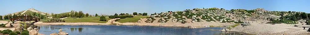 Der Park überzieht als weitläufige, vielfarbige, mit nur wenigen Gehölzen durchsetzte Gartenanlage eine künstlich aufgeschüttete Hügellandschaft, die sich markant über ihre Umgebung erhebt. Als charakteristisches und dominierendes Gestaltungselement wurden etwa 7000 aus dem Abraum des regionalen Bergbaues gewonnene Findlinge eingebracht, die von den Gletschern der Eiszeit aus Nordeuropa in die Lausitz verfrachtet worden sind. Ein Lehrpfad erschließt über 90 repräsentativ ausgewählte Exemplare, Etiketten und Informationstafeln geben Auskunft über Gesteinsart und Herkunft.