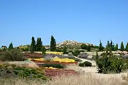 Der östliche Höhenzug nimmt den Sommerbereich auf. Hier herrscht von Ende Mai bis zum Sommer das Blau von Salbei, Glockenblumen und Katzenminze vor, die in großen Matten gepflanzt sind. Als Abdeckung wurde der Basaltsplitt gewählt. Der westliche Höhenzug nimmt den Nelken- und Alpenrosenbereich sowie den Bereich mit Kalkfindlingen auf. Auf der Nordseite des zentralen Höhenzuges befindet sich der Spätsommerbereich. Alle Täler sind aus gestalterischen Gründen mit Geröllschotter belegt und nur sparsam bepflanzt.