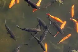 Der Teichgarten umfasst das ca. 0,4 ha große zentrale Gewässer und die daran anschließende Uferzone. Bei der Gestaltung und vor allem bei den Steinsetzungen im und am Wasser wurden Gestaltungsprinzipien asiatischer Gartenkunst herangezogen. Das zentrale Gewässer ist nur sparsam mit Wasserpflanzen besetzt. Auf einer Landzunge im Westteil sind Stauden angeordnet, die zur Teichnähe passen. Der nördliche Uferteil im Ausgehenden des mittleren Höhenrückens des Steingartens ist felsig gestaltet und größtenteils durch flach bleibende Koniferen bepflanzt. Am südlichen Ufer stehen an einem sonnenabgewandten Hang Rhododendren. Am östlichen Ufer mündet ein Trockental aus dem Sommerbereich des Steingartens kommend in den Teich (auch Rhododendron-Bepflanzung).