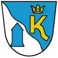 | Blasonierung: „Im Wellenschnitt schräg geteilt von Blau und Silber; oben der golden gekrönte goldene Großbuchstabe K, unten ein blauer Eisenhut“[6] | |