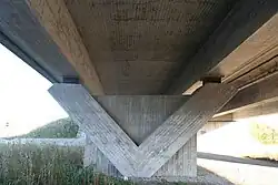 Die Pfeiler und Widerlager sind auf Großbohrpfählen mit 1,2 m Durchmesser gegründet und als gestaltete Pfeilerscheiben mit V-förmig gespreizten Pfeilerköpfen ausgebildet.