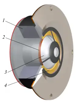 Technisch gesehen zählen sie zu den dynamischen Lautsprechern, werden also elektrodynamisch angetrieben. Die Bewegung wird von einer mittig angebrachten Spule ausgelöst; sie ist auf einen zylindrischen Träger gewickelt, der wiederum an der Membran befestigt ist. Leitet man ein elektrisches Signal durch die Spule, wird durch die Lorentzkraft (Wechselwirkung mit dem Feld des umgebenden Magneten) eine Kraft auf die Membran ausgeübt, die diese zum Schwingen veranlasst. Spule und Membran bewegen sich im Magnetfeld senkrecht zum Feldverlauf hin und her. Eine Zentrierspinne und die Sicke sorgen für die Rückführung der Membran in ihre Ruhelage sowie für die Zentrierung der Schwingspule.