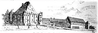 Zum Denkmal gehört auch das dreiflügelige Torhaus mit überhöhtem Mitteltrakt und großem Toreingang. Es ist in Neurenaissanceschmuckformen als Fachwerkbau errichtet und dient als Wohnung und Wirtschaftsgebäude.