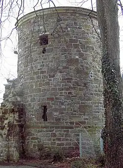 Das Erdgeschoss hatte drei Schießscharten für Bogen- und Armbrustschützen, zwei seitlich zum Graben hin und eine in der Mitte zum Feld hinaus. Das Obergeschoss hatte genau über den Schießscharten breitere Schießluken für den Einsatz von Geschützen wie z. B. Ballisten.
