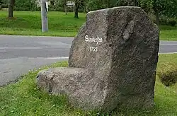 - Gedenkstein auf dem Friedhof für zwei unbekannte KZ-Häftlinge, die bei einem Todesmarsch im Februar 1945 von SS-Männern ermordet wurden