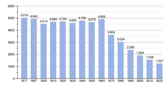Durch Fortzug in die umliegenden Städte ist die Bevölkerung seit den 1950er Jahren stetig gesunken.