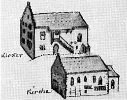 Neben der Kirche stehen einige Häuser, die 1828 auf den Grundmauern des abgebrannten Konventhauses des Klosters entstanden. Zwei Hausteile, die Klosterstube und der wiederentdeckte romanische Keller, sind erhalten.
