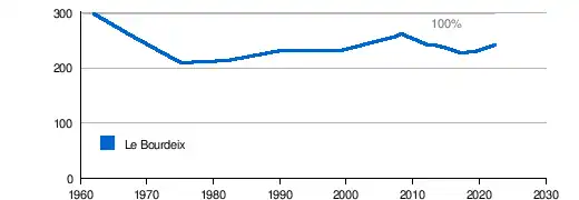 Le Bourdeix hatte seinen höchsten Bevölkerungsstand mit 578 Einwohnern im Jahr 1846.
