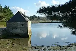- eine Gezeitenmühle, welche die unterschiedlichen Pegel für den Antrieb nutzt (18. Jahrhundert)