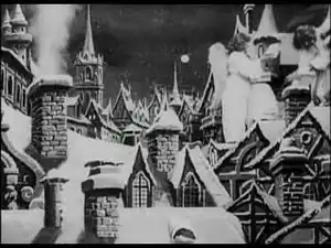 Das Szenenbild mit den Engeln, die Geschenke in den Schornsteinen platzieren, ist eine Ansicht über die Dächer einer Stadt. Diese Szene erstreckt sich über das gesamte Bild. Méliès verwendete in seinen späteren Filmen immer wieder derartige Einstellungen aus der Vogelschau und sie wurden auch von Kollegen wie Louis Feuillade genutzt.[2]