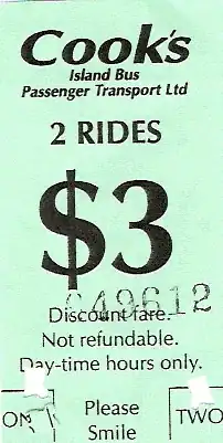 Auf den meisten Inseln der Südsee gibt es nur eine einzige Ringstraße, die die in der Küstenebene gelegenen Siedlungen miteinander verbindet. Der öffentliche Bus fährt die einzelnen Dörfer nacheinander ab, auf Rarotonga z. B. in einer Stunde linksherum und in der nächsten Stunde rechtsherum. Die Fahrzeuge halten wann und wo die Passagiere es wünschen, Fahrpläne und feste Haltestellen gibt es normalerweise nicht. Die Fahrgäste nehmen alle Arten von Lasten (auch lebende Tiere) mit. Besonders an Markttagen kann der Tourist, der sich dem Bus anvertrauen will, abenteuerliche Zuladungen erleben.