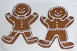 Seit dem 16. Jahrhundert sind figürliche Lebkuchen bekannt.[20] Lebkuchenmänner und -frauen werden besonders im englischsprachigen Raum zu Festen (Weihnachten, Halloween, Ostern etc.) verschenkt.[21][22]