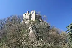 - Ruinen der Burg Lednica oberhalb des Ortes