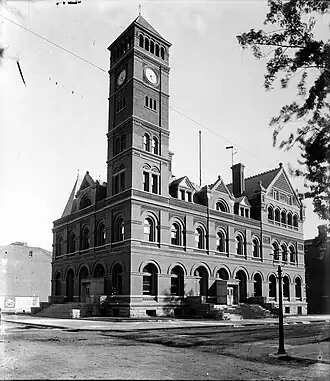 Das heutige Gerichts- und Verwaltungsgebäude in Keokuk ist das 1890 errichtete ehemalige Postgebäude.[6]